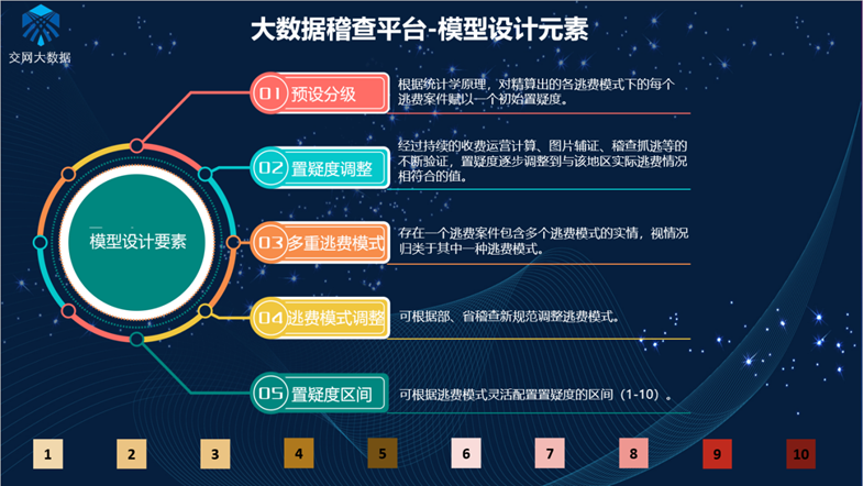 收费运营稽查平台,通过对接联网中心系统数据(包括治超系统数据、门架、车道系统数据、ETC系统数据等),实现对海量收费数据的分析、处理、挖掘等综合应用,逐步建成业务预测、智慧稽逃、图片分析、视频数据融合挖掘与应用等智能化体系。对现有信息进行资源整合,实现综合运营、集约管理、数据挖掘等深度应用。对车辆行驶异常行为进行分析处理,利用人工联合手段,优化稽查模型,建立新一代的稽查与征信体系。